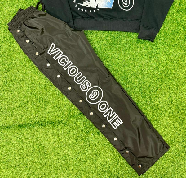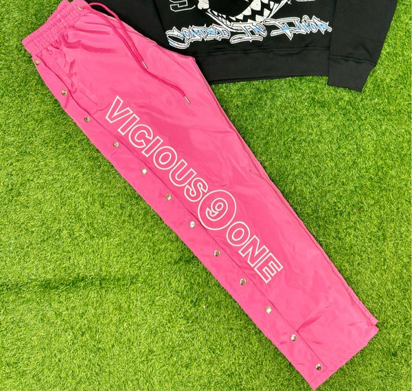 Nylon pants with Buttons going down each side. True to size in waist but baggy fit on legs. Logo is 3D embroidery in white. Comes in two colors Pink and black